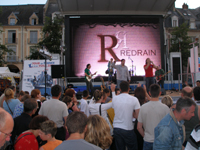 After a few days break in Mons Belgium, Red Rain arrived into Paris last week rested and prepared for a whirlwind ten day tour of France. Set once again to the backdrop of the football world cup the boys kicked off their tour in a beautiful old theatre in down town Paris close to the Eiffel Tower called the Salle Adyar. Scheduled the same night as the quarter final football match between France and Brazil the concert was a great success and finished in time for the locals to see the second half of the big game. The band, invited to watch the final minutes of the game in a pub a few doors down from the concert venue, could not have imagined the celebrations they were about to witness as France knocked Brazil out of the world cup. It was like nothing they had experienced before. Driving home they were met by a sea of extremely vocal and excited fans. Thousands of them from all ethnic groups, colors and religions joined in unity waving flags, tooting horns, hugging, dancing, and hanging out windows. From one end of the most famous street in France the Champs Elysees to that historical monument the Arc de Triomphe it was bumper to bumper traffic and fever pitch noise. What would have normally taken a few minutes took over an hour as Paris and France came to a stand still to celebrate their team’s victory. The next day the band drove two hrs east to the quaint and beautiful city of Dieppe. Dieppe, located on the west coast of France in the province of Normandy was host to sail boats competing in the 2006 Tour de France. The band, invited back after a great show at the same event last year did not disappoint. On a beautiful calm and clear night the crowds were entertained as they waited for the boats to arrive into the port of Dieppe. From Dieppe