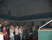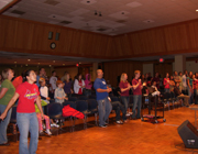 led them in the old hymnal favorite “Amazing Grace” and ended