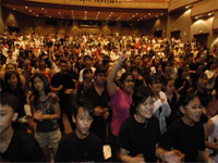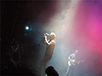 the Kallang theatre At the end of the second concert, the band invited the crowd to jump on stage and rock out with them. Hordes of young people ran up and began to dance along with the band as they played, and those in the seats swarmed up front near the stage area. Singing again to the familiar strains of “Red Rain”, “Summer” and “Oasis”, everyone was ecstatic. The atmosphere was so charged that the band refused to end, breaking out instead in a reprise of the theme song “The Lion Sleeps Tonight” from the cartoon movie “The Lion King”. And in true spontaneous fashion, the crowd sang along with them. The